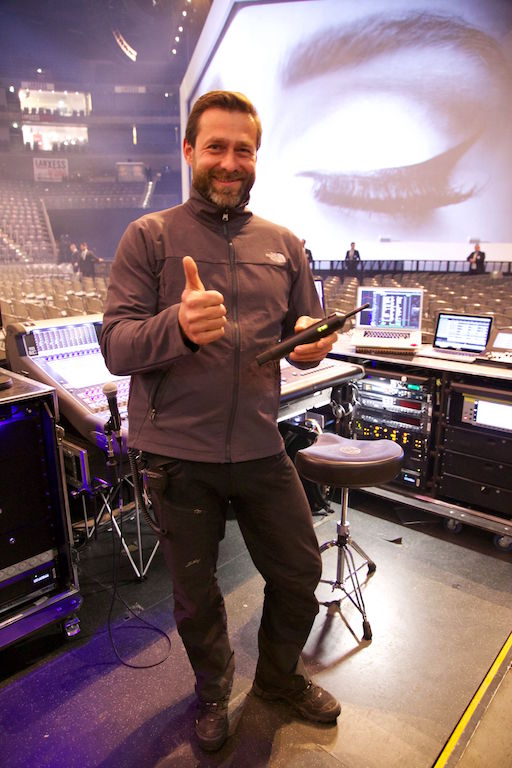 En la imagen podemos ver como Ulf Oeckel presume del uso del Beyerdynamic  TG MM1w, un micrófono de medición muy empleado para calibrar sistemas  PA en los principales escenarios del panorama.