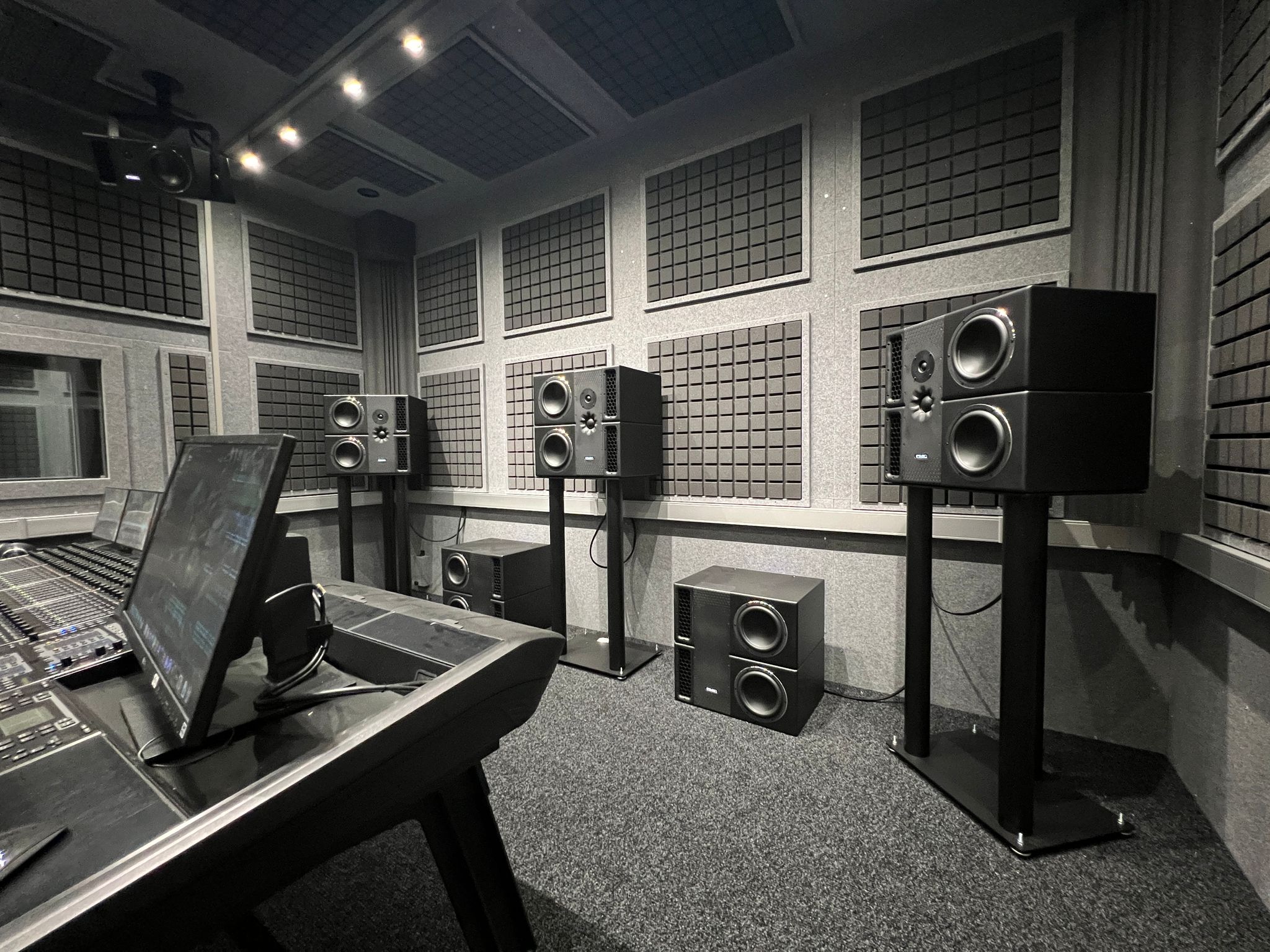 También estudios como NJP Studios en Suiza se han convertido uno más de una larga lista de instalaciones de mezclas de música Dolby Atmos equipada con monitoreo PMC. En este caso una sala con Dolby Atmos 9.1.4.